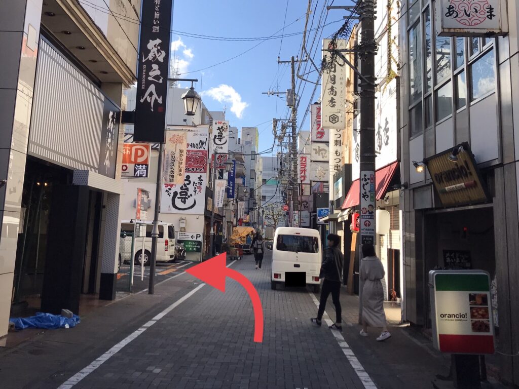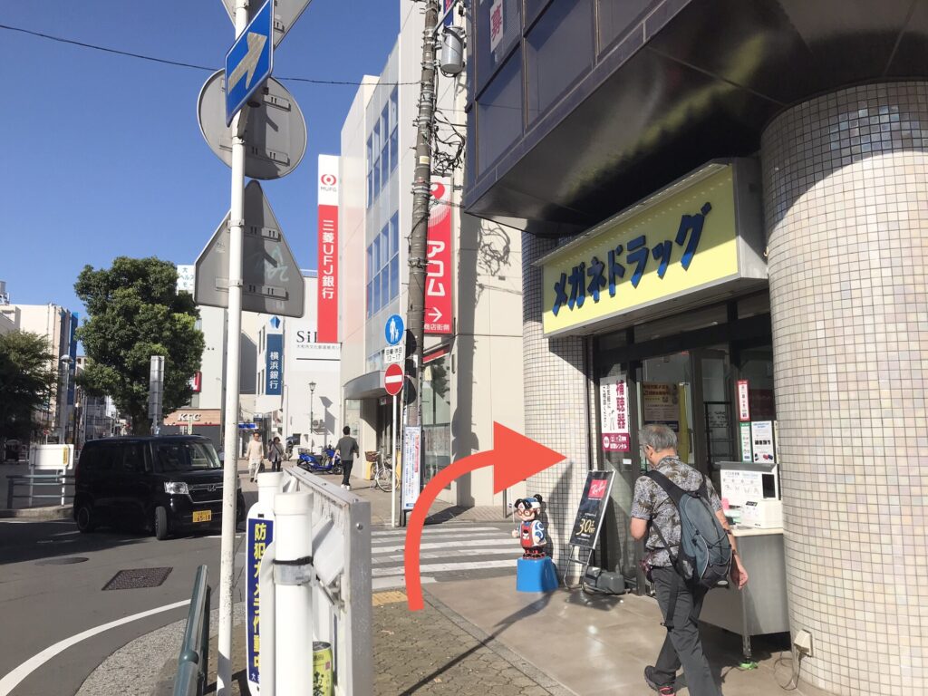 すぐに右に進み、メガネドラッグと三菱UFJ銀行の間のとおりに入ります。