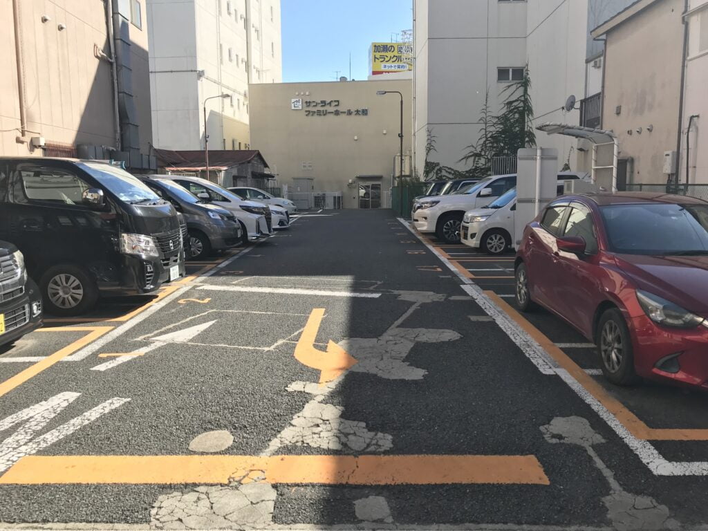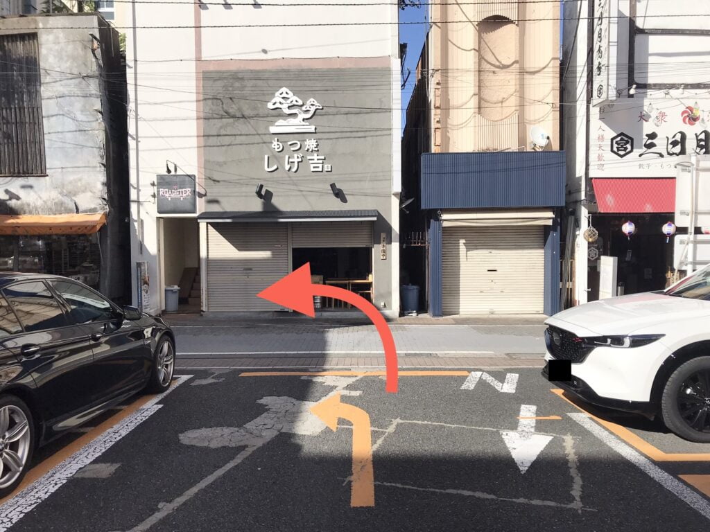 100mほど進んだところの左にある蔵之介のひとつ奥が、本店の駐車場「Dパーキング」です。