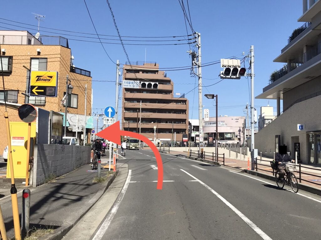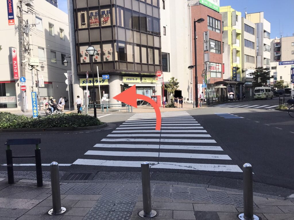 真っすぐ進み、横断歩道を渡ってすぐのところを、少し左に進みます。