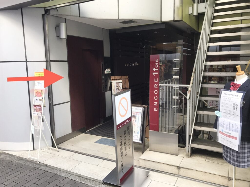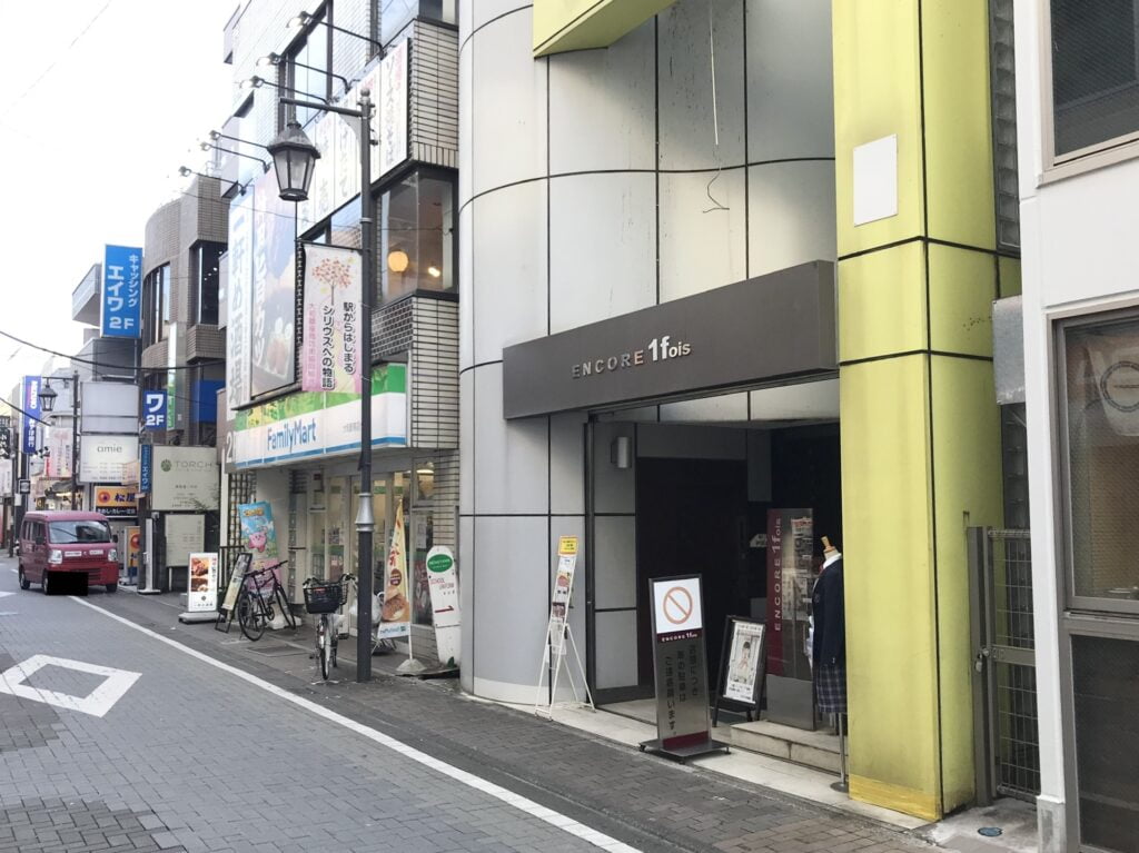 数秒真っ直ぐ進むと、右にファミリーマートが見えてきます。その手前のENCORE 1foisという黄色いビルの3階が本店です。