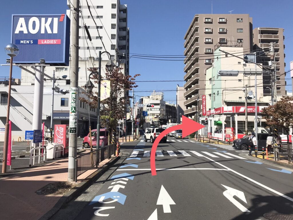 100mほど進み、スーツのAOKIとニッポンレンタカーのある「大和南」交差点を右折します。